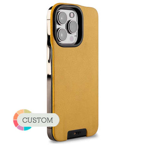 Suitable for iPhone 13 Pro Max / Protective camera eyelet / Compatible with Apple’s / MagSafe Charger / 100% handcrafted with Caterina or Floater Leather / Minimalist design / Easily attaches to your iPhone using reusable adhesive backing plus magnets / Available in multiple colors / Does not protect borders or screen.