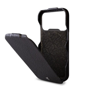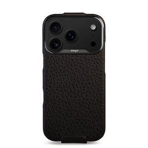 Protect your iPhone 17 Pro with a handcrafted leather case that flips open vertically and guards your screen at every moment.