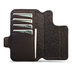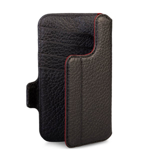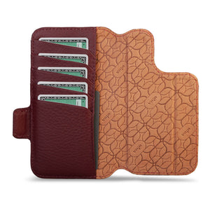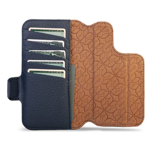Introducing the V-Mag Wallet Wrap. A leather accessory 6 times stronger than MagSafe that turns your V-Mag case into an iPhone 15 Pro wallet leather case. Utilizing its embedded magnets and unique strength, the wallet wrap easily connects to your V-Mag case, providing a secure haven for up to five credit cards shielded by RFID protection. Additionally, it comes with a hidden bill compartment and a magnetic closure, offering an added level of security. Moreover, this leather accessory serves a dual purpose as a stand case for iPhone 15 Pro - Perfect for gaming, working, or enjoying your favorite movies hands-free. All these features are enveloped in soft Patagonia leather.