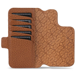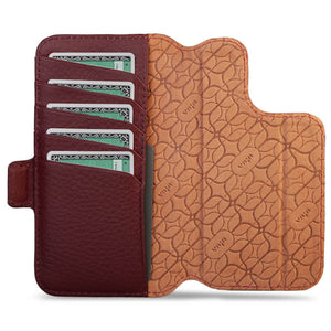 Meet the V-Mag Wallet Wrap. A leather accessory surpassing MagSafe's strength by six times. This V-Mag add-on transforms your V-Mag case into a wallet leather case for the iPhone 15 Pro Max. It effortlessly pairs via embedded magnets, safeguarding up to five cards with RFID protection, complemented by a hidden bill compartment and a magnetic closure to keep your essentials secured. This leather accessory not only turns your V-Mag case into an iPhone 15 Pro Max wallet leather case, but it's also a stand case. Keep your screen safe and your essentials housed in soft Patagonia leather.